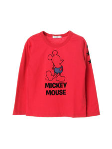 ミッキーマウスのシルエットが描かれている長袖Tシャツです。袖には★が3個。