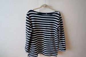 ちょっと冬には寒いですが、無印の七分袖Tシャツも、襟の部分にはみだしはありません。