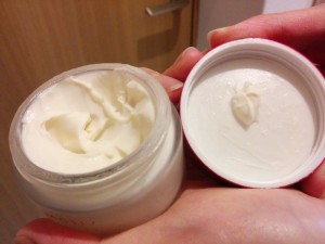 クリームが、重たそうですが、塗るとさらっとしていてべたつきは少ないです。例えば、ニベアは油分が多いので、朝に塗ると日焼けしやすくなる、といいますが、これは紫外線予防にもなるし、朝に塗ってもべたつきがきになる感じはありません。