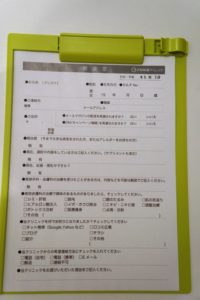 問診票、ミュゼと違い、項目が少なく、普段病院に行き記入するくらいの量でした。